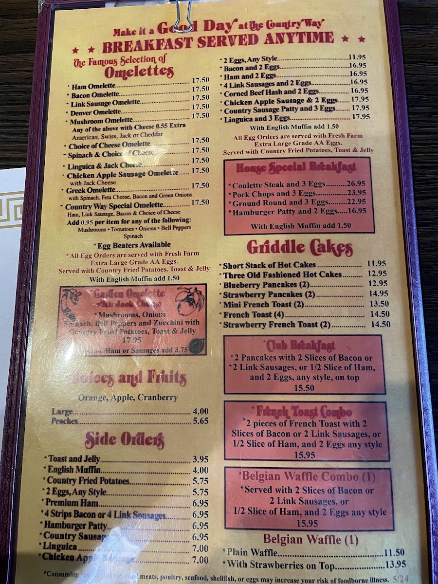 Customer reviews rave about the quick service and the impressive food quality. With each bite, you not only taste the passion behind the cooking but also the heart of a family-owned establishment that treats its guests like family. Whether you're indulging in a Triple Turkey Club or savoring the French Toast, you are in for a satisfying culinary experience at Country Way. Don’t miss the chance to visit this local gem—where amazing meals are crafted with love and tradition.